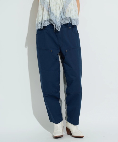 フロントとバックで異なる2FACEを楽しめる、ダブルウエストデザインのロングパンツ。前身頃には薄手のチノ素材を使用し、ダブルニーやリベット、補強ステッチなど、ワークディテールを落とし込んだデザインが特徴です。一方バックスタイルには、オールシーズン着用しやすい裏毛を採用し、リラックス感のある印象に仕上げています。素材の切り替えが視覚的なアクセントとなり、シンプルなトップスと合わせるだけでも存在感のある着こなしが完成。ウエストはゴムとドローコード仕様で、見た目以上に快適な穿き心地も魅力です。ワーク感とイージーさをバランスよく掛け合わせた、デイリーに取り入れやすい一本です。 品番:16130360 <ANNA SUI NYC(アナ スイ エヌワイシー)> ニューヨークを代表するコレクションブランドANNA SUIが、デイリーかつカジュアルに楽しめる新しいブランドとして、ANNA SUI NYCをスタート。 ブランドコンセプトは"SOUVENIR NYC" 「NEW YORKでショッピングするようなワクワク感」をテーマに、着る人を刺激するデザインやアイテムを展開。従来のアパレルの既成概念に縛られず、自由でハッピーなファッションを提案。 ________________________________________ ▼商品のお気に入り登録 ハートマークをクリックし、お好きなカラーを選んでお気に入りに登録。完売カラーの再入荷通知や、ラスト1点の通知、セールの通知も受け取ることができます。 ▼ブランドのお気に入り登録 新商品や再入荷等、いち早くブランドのお得な情報を受け取ることができます。 ________________________________________