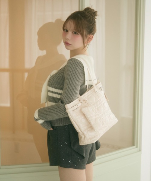 TITTY&CO.2026SS collection♡ハートキルティングトートバッグ♡立体感のあるハートキルティングが目を引く、フェミニンムード漂うトートバッグ。甘さのあるデザインながら、落ち着いたカラーとベルトディテールで大人っぽさも兼ね備えたアイテムです。A4サイズが収納できる実用性と、コーデのアクセントになるデザイン性を両立。付属のミニポーチ付きで、デイリーからお出かけまで幅広く活躍します。[detail]ハート柄のキルティングデザインがさりげなく可愛いポイント上品なフェイクレザー素材で高見え◎A4サイズ対応で通勤・通学にも便利取り外し可能なミニポーチ付き肩掛けしやすいハンドル長さで使い勝手も抜群[styling]フェミニンなワンピースに合わせて大人ガーリーなスタイリングにデニム×ニットのカジュアルコーデに合わせて甘さをプラスモノトーンコーデのアクセントとして取り入れるのもおすすめ通勤・通学スタイルにも馴染む上品なデザインでオンオフ問わず活躍【商品のお気に入り登録】完売カラーの再入荷や、セール通知などお得な情報を受け取ることができます。ぜひご登録下さい♪【ブランドのお気に入り登録】新作入荷や再入荷、セールやクーポンイベントなど注目のブランド情報を受け取ることができます。ぜひご登録ください!!※照明の関係により、実際よりも色味が違って見える場合がございます。また、パソコン・スマートフォンなどの環境により、若干製品と画像のカラーが異なる場合もございます。予めご了承くださいませ。※画像の商品はサンプルです。実際の商品と仕様・加工・サイズが若干異なる場合がございます。また、生産時期により、サイズやカラーに誤差が生じる場合がございます。予めご了承くださいませ。