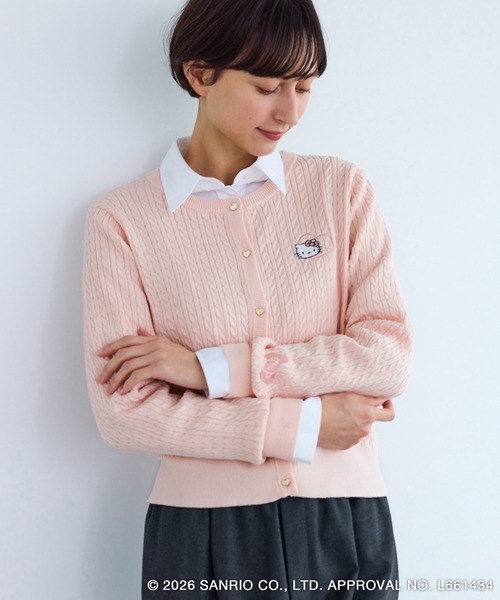 ROPE' PICNIC×ハローキティのスペシャルアイテム!【素材感】 ・肌あたりの良いニット素材を使用し、程よいフィット感で快適に着られるケーブルニットカーディガン。 ・立体感のある編み柄が特徴で、伸縮性があり動きやすい。 【デザイン・シルエット】 ・ハローキティにハートを組み合わせたアートは、ロペピクニックでしか手に入らない限定のスペシャルデザイン。 ・左胸のハローキティのフェイスワッペンと、フロントのハート型ボタンが愛らしいアクセントに。 ・左袖口にあしらったリボン刺繍が、さりげなくフェミニンなムードをプラス。 ・コンパクトすぎない程よい身幅とクロップド気味の丈で、バランス良く着用できる。 【カラー】 ・オフホワイト(15):リボン・ハート刺繍カラー /ピンク。着回し力の高いオフホワイトは、フェミニンにもカジュアルにも対応する万能カラー。 ・ダークブラウン(20):リボン刺繍カラー/グレー、ハート刺繍カラー/ブラック。 チョコレートのようなブラウンは、甘さを抑えつつ大人可愛い印象に仕上がる色合い。 ・ピンク(63):リボン・ハート刺繍カラー /ピンク。スタイリングの主役になるピンクは、コーディネートに程よい甘さを添えるカラー。 【スタイリングポイント】 ・前を閉じてトップス風に着用すれば、ハートボタンが映えるフェミニンスタイルに。 ・シャツやシアートップスをインナーに重ねて、クロップド丈を活かしたレイヤードがおすすめ。 ・スカートからパンツまで幅広く合わせやすく、デイリーに活躍するケーブルニットカーディガン。 ----------------------------- 裏地:なし 光沢感:なし 透け感:なし 伸縮性:あり ファスナー:なし ポケット:なし ボタン:あり(開閉可) 生地の厚さ:普通 季節:春・秋・冬 ----------------------------- ※撮影時の光、お使いのモニター環境によって色の見え方が違う場合がございます。 ※2025年秋冬商品より、ワンサイズ展開の商品は「F(フリーサイズ)」表記に変更しております。 詳しい採寸はサイズ欄をご覧ください。 【モデル着用サイズ】 身長:168cm 着用サイズ:F