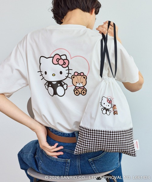 ROPE' PICNIC×ハローキティのスペシャルアイテム!【素材感】・サラッとして肌触りが良く、快適な着心地を実現した天竺素材。・デイリー使いしやすいコットンベース素材を使用。【デザイン・シルエット】・ロペピクニックでしか手に入らない限定のスペシャルデザイン。・カジュアルに着られるオーバーシルエットで、ヒップが隠れる安心丈が大人のデイリーコーデに最適。・Tシャツが入る大きめ巾着付きで、バレンタインギフトや親子リンクコーデにもおすすめの限定デザイン。※巾着サイズ:横25×縦32cm※巾着素材・ホワイト系(11)ホワイト系(12):(本体) ポリエステル88% 綿12% (チュール部分) 基布 ナイロン100% (フロッキー部分) ポリエステル 100%・ブラック系(02)ピンク(63):(無地部分 )ポリエステル88% 綿12% (ギンガム柄部分) ポリエステル 100%【カラー】・ボディカラーは、ブラック、アイボリー、ピンクの3色展開。・アイボリーのみプリントパターンが2種類あり。・着回しやすいベーシックカラーをベースに、ハローキティのアートが引き立つ配色バランスに仕上げた一枚。・巾着とのカラーリンクも楽しめる統一感のある配色で、ギフト需要にも対応する特別感のあるカラー展開。・ブラック系(02):フロント/ハローキティプリント×ラインストーン、バック/リボン刺繍。巾着/ブラックチュール。・ホワイト系(11):フロント/リボン刺繍、バック/ハローキティ×チョコレートプリント。巾着/ピンクギンガム。・ホワイト系(12):フロント/ロゴ刺繍、バック/ハローキティ×タイニーチャムプリント。巾着/ブラックギンガム。・ピンク(63):フロント/リボン刺繍、バック/ハローキティ×チョコレートプリント。巾着/ピンクチュール。【スタイリングポイント】・デニムやチノパンに合わせたカジュアルなスタイリングが一押し。・ロングスカートやナロースカートと合わせて女性らしい着こなしに。・同シリーズでKIDS(品番:GRM36030)も展開しているのでKIDSとリンクコーディネートもおすすめ。-----------------------------裏地:なし光沢感:なし透け感:ブラック系(02)、ピンク(63)はなし、ホワイト系(11)、ホワイト系(12)はややあり伸縮性:あり生地の厚さ:やや薄手季節:夏-----------------------------※撮影時の光、お使いのモニター環境によって色の見え方が違う場合がございます。※2025年秋冬商品より、ワンサイズ展開の商品は「F(フリーサイズ)」表記に変更しております。詳しい採寸はサイズ欄をご覧ください。※全シーズン展開していたコラボTシャツ(品番:GDM55900)と同型。【モデル着用サイズ】身長:168cm 着用サイズ:F