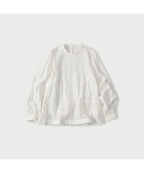 クラフトでつくるラグジュアリームラや綿の欠片の飛び込みがあっても美しいと思えるインドカディの生地はインドの村々の家庭で大切に紡がれ、織られています。温かみのある素朴な生地のふくらみは現代の機械で出せない大好きな風合い。大胆なカットワークと細かいピンタックで、力強さと繊細さを表現しました。ブラウスに合わせてボタンの色にもこだわりました。