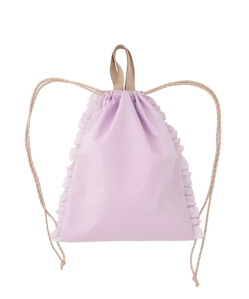 ●体操着など荷物が多い日にぴったりなナップサック。●表生地は撥水加工が施されているので、雨の日でも安心。●内側には名前を記入できるネームタグが付いています。●フリフリレースが付いている可愛らしいデザインです♪《ご使用上の注意》●名前を書く際は、布用のペンなどを使用してください。●もみ洗いはせず、押し洗いしてください。●色落ちする場合がありますので他のものと一緒に洗濯しないでください。●つけ置きはしないでください。●洗濯後は直ちに形を整えて干してください。●湿った状態や摩擦により色移りする場合がありますので注意してください。●撥水効果は徐々に薄れます。●無理な詰め込みや、極めて重いものは入れないでください。●尖ったものや鋭利なものを入れないでください。●紐が首や体に巻き付かないよう注意してください。●中に入れたものが落ちることがありますので振り回さないでください。●中に入れたものの紛失・破損や万が一の事故などについては責任を負いかねますので予めご了承ください。●生地端をヒートカットしているため、茶色の変色が見られることがあります。●素材の特性上、ヒートカットしていても、端がほつれてくる場合があります。●高温多湿を避け、通気性の良い場所に保管してください。●火気の近くに置いたり保管しないでください。