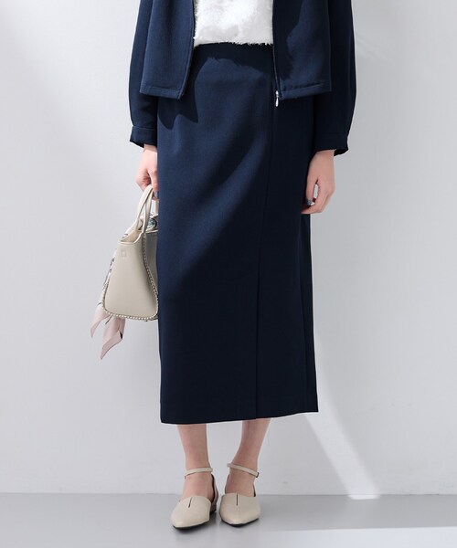 ふくらみのあるやわらかい素材を使用したIラインスカートです。すっきりとした縦のシルエットはスタイルアップ見えし、後ろウエストはゴム仕様なので履き心地もイージーなスカートとなっています。同じ素材のブルゾン(505-45202)とのセットアップスタイルがおすすめです。【仕様】・ポケット数:横×2・後ろファスナー・ウエスト後ろゴム・裏地なし※グレージュ(050)はやや透け感があるため、インナーの着用をおすすめします。※この製品は、太陽光線中の紫外線(UV)を通しにくくします。この効果は永久的ではありません。■こちらの商品はINDIVI店舗では取り扱いがございませんのでお問い合わせはコールセンターまで。※照明の関係により、実際よりも色味が違って見える場合があります。また、パソコン・スマートフォンなどの環境により、若干製品と画像のカラーが異なる場合もございます。モデル情報:身長170cm B74 W60 H86 着用サイズ:38(M)店舗へのお問い合わせ商品番号:505-75200●製品寸法:05(XXS):W61cm H88cm 総丈77cm13(LL):W77cm H106cm 総丈85cm36(S):W63cm H92cm 総丈80cm38(M):W66cm H95cm 総丈82cm40:W69cm H98cm 総丈84cm備考: