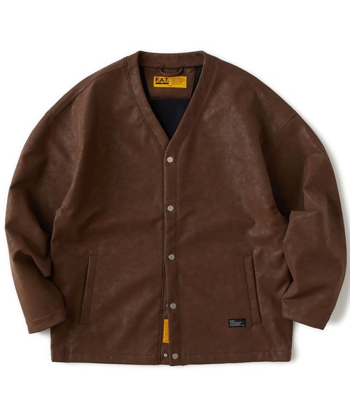 ムラ感のあるマットな合皮素材を使用したスナップカーディガン。肩幅やアームまわりなどを大振りにすることで、いつものシャツとは異なるリラックススタイルを演出してくれる。フロント・カフスのソリッドなスナップボタンがクリーンな印象の仕上がり。シンプルながらも幅広いコーディネートで活躍してくれるアイテム。ポケット横のブランドネームが程よいアクセントに。
