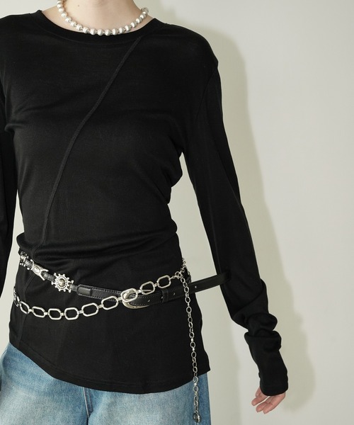 フロントに入った斜めのシームラインが、縦のラインを強調するロングスリーブトップス。滑らかな素材感とスリムなシルエットで、カットソーながらもラフになりすぎない印象に。一枚着としてはもちろん、レイヤードのベースにも使いやすく、スタイリングを引き締めてくれるアイテムです。詳細補足仕様:クルーネック伸縮性:あり 透け感:ややあり 光沢:なし裏地:なし 厚さ:やや薄手サイズ感:ややタイト~普通instagram→chuclla_official取扱注意事項※サイズは、測定方法と測定者によって多少の誤差がありますのでご了承下さいませ。また体型によって、サイズ感に個人差がございます。(平置き採寸)※商品によってはシワがつきやすく、畳みジワや折りジワなどが強く出る場合がございます。その際は加湿した風呂場に数時間干すか、スチームアイロンでのお手入れをお勧めしております。※生地の素材上、においが気になる場合がございます。その際は陰干しして頂くと、ほとんど感じにくくなります。※レース等の繊細な素材を使用している場合には、お取り扱いにご注意下さい。※デニムを使用した製品は、インディゴ染めをしています。汗や摩擦により移染しやすいので、白色、淡色の組み合わせや重ね着はお避け下さい。※ニット素材を使用した製品は、重みで伸びやすくなりますのでハンガーでの保管はお控えください。※お洗濯の際には、品質表示の指示に従ってください。必要であれば専門店にご相談ください。家庭でご洗濯できる商品に関しては、洗濯専用ネットをご使用の上、個別での洗濯をお勧めいたします。お色物は、色移りする可能性がございます。※着用画像は撮影状況や光によって、多少異なる場合がございますので、置き画像をご確認下さい。※2023年7月1日より、環境に配慮した取り組みの一環として、紙のアテンションタグを廃止しております。