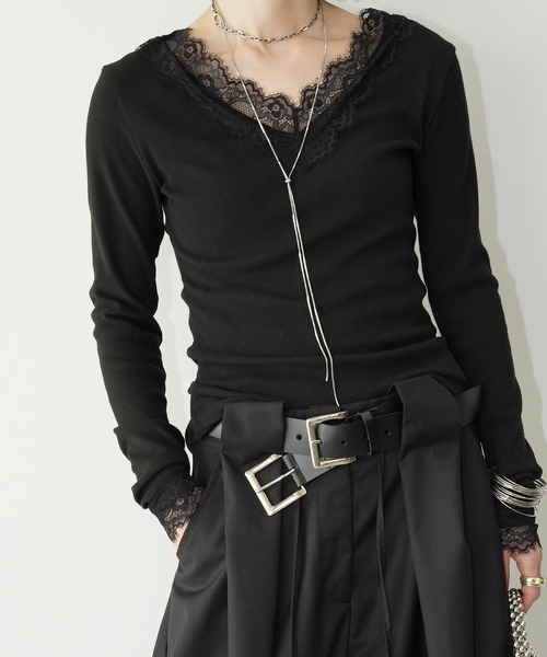 ネックラインと袖口にレースをあしらった、Vネックデザインのロングスリーブトップス。薄手でなめらかな着心地がレイヤードスタイルにも馴染みやすい仕上がり。一枚ではもちろん、ニットやジャケットのインナーとしても活躍します。詳細補足仕様:Vネック、袖口レース伸縮性:あり 透け感:ホワイトのみややあり 光沢:なし裏地:なし 厚さ:普通サイズ感:タイト~普通instagram→chuclla_official取扱注意事項※サイズは、測定方法と測定者によって多少の誤差がありますのでご了承下さいませ。また体型によって、サイズ感に個人差がございます。(平置き採寸)※商品によってはシワがつきやすく、畳みジワや折りジワなどが強く出る場合がございます。その際は加湿した風呂場に数時間干すか、スチームアイロンでのお手入れをお勧めしております。※生地の素材上、においが気になる場合がございます。その際は陰干しして頂くと、ほとんど感じにくくなります。※レース等の繊細な素材を使用している場合には、お取り扱いにご注意下さい。※デニムを使用した製品は、インディゴ染めをしています。汗や摩擦により移染しやすいので、白色、淡色の組み合わせや重ね着はお避け下さい。※ニット素材を使用した製品は、重みで伸びやすくなりますのでハンガーでの保管はお控えください。※お洗濯の際には、品質表示の指示に従ってください。必要であれば専門店にご相談ください。家庭でご洗濯できる商品に関しては、洗濯専用ネットをご使用の上、個別での洗濯をお勧めいたします。お色物は、色移りする可能性がございます。※着用画像は撮影状況や光によって、多少異なる場合がございますので、置き画像をご確認下さい。※2023年7月26日より、環境に配慮した取り組みの一環として、紙のアテンションタグを廃止しております。