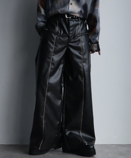 welise 2026 Spring/Summer -Intuition Sense- 無骨なディテールとスタイリッシュなシルエットが織りなす、weliseらしい解釈で完成したPUレザーパンツ。 ・デザイン/シルエット ◆Design/Silhouette◆ 本革のような奥行きを感じさせる、リアルなシボ感が魅力のPUレザースラックス。シルエットはストレートをベースに、わずかにフレアを効かせた微フレアライン。 広がりすぎず、スタイルを選ばない絶妙なバランスに仕上げています。 フロントにはライダース由来のジッパーディテールを取り入れ、ミニマルな中にエッジの効いたアクセントをプラス。 さらに、センターに切り替えラインを入れることで縦のラインを強調。脚をすっきりと長く見せ、スタイルアップ効果も期待できます。 フロントジッパーには、同素材のコードをあしらい、さりげないアクセントをプラス。 ミニマルな中にエッジを効かせた、ブランドらしいディテールが光ります。 ・素材 ◆Fabric◆ 絶妙なヴィンテージ感のある着込んだような風合いが、コーディネートに奥行きを与えてくれるPUレザー素材を使用。 カラーはベーシックで使いやすい王道のブラックと、アルコール加工を施すことでシーム部分を変色させて独自のムラ感と深みを表現したブラックヴィンテージの2色展開。 しっかりとしたアウターらしい肉感がありながら、ハードになりすぎず、洗練された印象に仕上げています。 ・コーディネート◆Coordinate◆ 同素材を使用したジャケット【商品番号:WL26SS019】とのセットアップ着用が可能です。 一見コーディネートに組み込むのが難しそうですが、これからの季節はシャツやカットソー、パーカーやニットなどシンプルなアイテムとも相性抜群。 きれいめにもモードにも振れる、今季スタイリングにスパイスを与える一本です。 ※ATTENTION※ ・生地の風合い上、ややカーキがかったブラックに仕上がっています。 ・BLACK-VINTAGEはアルコール加工を施しております。加工感は個体差がある場合がございます。 -welise/ウェライズ- ブランド名はwell(良い)+Rise(上昇)を組み合わせた造語になります。 洋服の持つ本来の美しさを最大限に引き出したハイエンドな素材感にこだわりながら 常にアップデートしていくシルエット・デザイン性も追求。
