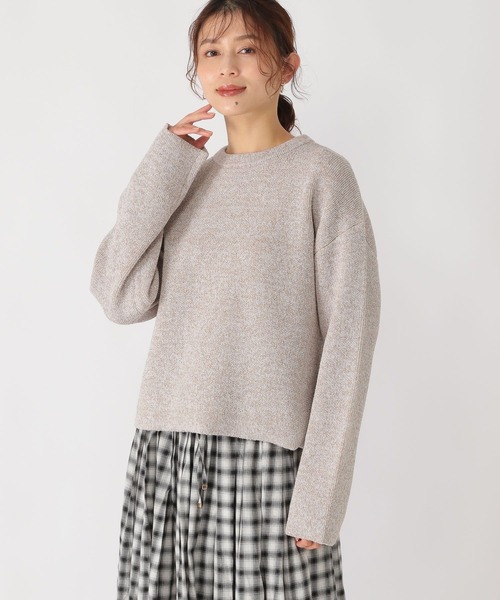 異なる雰囲気を楽しめるリバーシブル仕様幅広い着こなしが楽しめるニットプルオーバーーーー【素材】もちっとした柔らかく肌触りの良い素材を使用。リバーシブル仕様なのでフラットなすっきり見えと、ブークレの表面感の異なる編地をお楽しみいただけます。【デザイン】7ゲージで作成されたリバーシブル仕様のニットプルオーバー。ブークレを表にした場合は、より綺麗めに見えるようフラットな襟デザインに。フラット面を表にした場合は、カジュアル見えになるよう襟リブ仕上げになっています。それぞれで襟のデザインを変えることで異なる雰囲気を楽しめるのも嬉しいポイントです。トップス ニット リバーシブル 2WAYーーー【スタイリング】デニムやチノパン合わせのカジュアルな着こなしはもちろん、スカート合わせのガーリーな着こなしもおすすめ。袖口を折り返して、配色見えのアクセントを持たせても◎