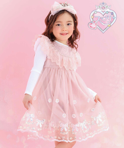 -26SS- 女の子のときめきをぎゅっと詰め込んだ、スラプリシリーズから、存在感たっぷりの女の子用のジャンパースカート。 ■デザイン 華やかなチュール使いが目を引くアイテム。 ふんわりと広がるスカート部分は、表側に透け感のあるチュールを使用し、軽やかで優しい印象に仕上げました。 内側のチュールには、リボンやお花のスパンコール刺しゅうをあしらい、動くたびにきらりと輝く特別感をプラス。 ヨーク部分にチュールレースのフリルをほどこしたドレッシーなデザイン。 顔まわりをぱっと明るく見せ、クラシカルで可愛らしい雰囲気を演出します。 トップスを重ねたレイヤードスタイルでも、1枚で主役になるデザインです。 普段のお出かけはもちろん、発表会やお誕生日など、少し特別なシーンにもおすすめです。 カラーはやさしく甘いピンクと、上品で落ち着いたブルーの2色展開。 女の子らしさと華やかさをたっぷり詰め込んだ、コーディネートの主役になるジャンパースカートです。 ■素材/機能 スカート裏にはなめらかなサテン素材を重ねることで、見た目の美しさだけでなく、肌あたりも◎。 後ろファスナー仕様で、お着替えもスムーズ。 ※内スカートあり。 ※商品の裾部分につきましては、バラつきが多い商品となっております。 ※柄の出方は生地の裁断により一点一点異なります。 26春夏アイテム 【2026年2月のテーマ / Blooming Garden】 楽しいことも、おいしい時間も、一緒に分け合うよろこび。 やさしい気持ちになれるハート柄や愛らしい動物たちのモチーフに、あたたかなカラーを散りばめて。 大切な人と想いを共有できる、やさしく幸せなコレクション。 【2026 SPRING SUMMER / Wishing you joy-喜びが訪れますように-】 すてきな一日を願う気持ちをお洋服に込めて。 誰かを想うやさしさと、あたたかなぬくもりを感じながら、毎日が小さな幸せで満たされますように。 優しくてあたたかなイメージのコレクション。 【SLAP SLIP(スラップ スリップ)】 ~子どもの欲しいをカタチに~ ヨーロッパのこどものように 子どもらしい今しか着れないナチュラルなかわいさを提案 どこか上品で清楚感漂うフレンチカジュアルは いつものコーディネートをさりげなく格上げ