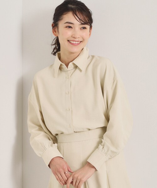 【デザイン】淡カラーで春気分先取り♪ピーチ素材なのでまだ寒い今時期から着られるブラウス。ピーチ素材のマットな質感×春カラーが新鮮なブラウス。本格的な寒さの2月に今すぐ着られて春感も出せるアイテム♪ニットにINしてレイヤードスタイルを楽しむのも◎バックギャザーのデザインにゆるっとした抜け感が大人なラフさを感じるデザイン。きちんと感はありつつもかっちりし過ぎないデザインなので、きれいめにもカジュアルにも着まわせます。同素材のスカート【P93-65501】とセットアップでの着用も可能です。【素材】マットな質感のピーチ素材。※照明の関係により、実際よりも色味が違って見える場合があります。また、パソコン・スマートフォンなどの環境により、若干製品と画像のカラーが異なる場合もございます。----------------------------------------★お気に入り登録がおすすめ★▽気になる商品はハートマークをクリック!・再入荷やセールの通知をお知らせ・お気に入り一覧からいつでもチェック▽ブランドのお気に入り登録も!・新商品やお得な情報をいち早くお知らせ----------------------------------------モデル情報:身長164cm B80 W60 H84 着用サイズ:00(フリーサイズ)店舗へのお問い合わせ商品番号:P93-55508●製品寸法:00(フリーサイズ):着丈71cm B104cm 袖丈45cm 肩幅56cm備考: