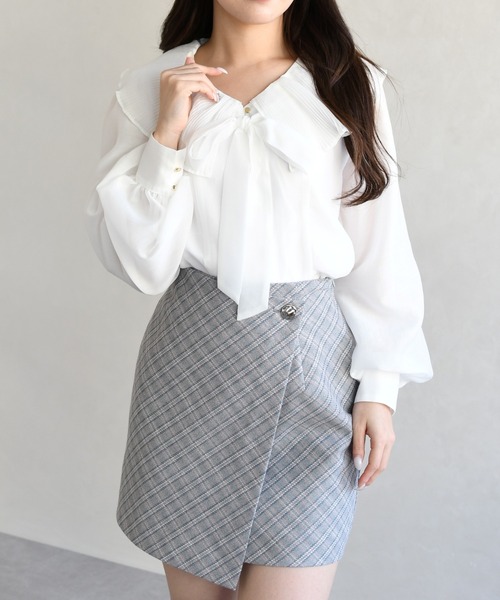 -*-*-*-2026 Spring&Summer Item-*-*-*- クラシカルなツイードチェックが映えるミニスカート。 大人フェミニンな雰囲気を楽しめる一枚。 ■ design 春先のスタイリングに取り入れやすい、 ツイードチェック素材のミニスカート。 ラップ風のデザインとバランスの良い丈感で、 大人フェミニンな印象に仕上げました。 フロントにあしらったゴールドの変形ボタンも、 さりげないアクセントになっています。 適度なハリのある生地で、 腰まわりのラインを整えながらすっきりとしたシルエットに。 ■ styling point ウエスト位置をやや高めに設定しており、 自然な脚長効果も期待できます。 コンパクトなトップスを合わせることで、 バランスの良いスタイリングが完成します。 ※ご覧のモニター環境や光の照射・角度により、 画像の色味と多少異なる場合がございます。 ご了承ください。 \《お気に入り登録》でお得な情報をGET/ 『♡』をクリックすると… ・《商品のお気に入り登録》で再入荷通知や ラスト1点の通知、セールやクーポンの通知も 受け取ることができます。 ・《ブランドのお気に入り登録》で新作商品や再入荷など、 お得な情報を受け取ることができます。