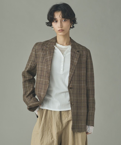 WEB先行予約受付中2026 SPRING&SUMMER COLLECTION上質なリネンが織りなすシックで軽やかなテーラードジャケット■デザイン・ヨーロッパの雰囲気が漂うシックなブラウンのグレンチェック柄が魅力。・背抜きの裏地のみで軽く仕立てた2つ釦のシングルテーラードジャケット。・春夏シーズンの羽織りとして重宝する軽快な着用感を実現。・ワンウォッシュの濃インディゴデニムにTシャツを合わせたカジュアルなスタイリングもおすすめ。・シンプルながらも洗練された佇まいでオンオフ問わず活躍する一着。■素材 / お手入れ方法・ヨーロッパリネンを使用した、上質なリネンファブリック。・薄くてライトな質感ながらも若干高密度に仕上げたこだわりの生地。・リネン特有の清涼感と滑らかな肌触りを両立。【Curensology(カレンソロジー)】 旅とは、非日常と日常の間を行ったり来たりしながら、その土地の空気や風景、文化、歴史、そして出会いを、五感のすべてを使って受け止めること。「カレンソロジー(Curensology)」は、そんな旅をイメージした、知的でエレガントな女性のためのワードローブとテキスタイルを提案。バカンスや出張に持っていきたい機能的なアイテムをはじめ、日々の暮らしをアップデートする新しいデザイン、着心地の良いエッセンシャルなものなどを展開しています。※サンプルにて撮影をしておりますので、実際の商品とは仕様や加工・サイズ等が若干異なる場合がございます。※屋外の光や照明の当たり具合で、実物と色味が異なって見える場合がございます。詳細画像の色味をご確認ください。 なお、商品の色や質感を出来るだけ忠実に再現するよう心掛けておりますが、パソコンなどの環境により、実物と若干異なる場合がございます。▼商品のお気に入り登録をおすすめします▼♡をクリック!完売カラーの再入荷や、ラスト1点の通知、セールの際の通知を受ける事ができます。ブランドのお気に入り登録もご一緒にお願い致します。