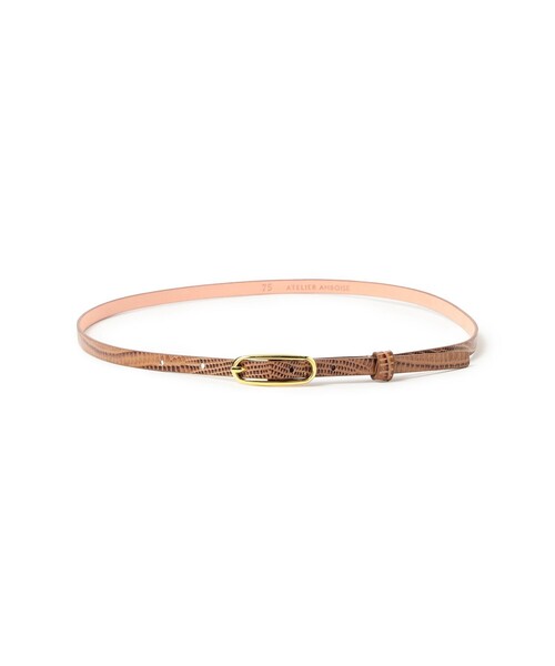 大人のリュクスなウエストマーク ■ デザイン クロコ調の型押しレザーと艶やかなゴールドバックルが、クラシカルで上品な印象を演出するベルト。細身のシルエットが女性らしく、ウエストにさりげない華やかさを添える、凛とした表情のデザインです。 ■ コーディネート シャツドレスやパンツのポイント使いにぴったり。加えるだけでカジュアルな休日スタイルも、洗練されたお出かけ着へと昇華します。 ■ 素材 卓越した職人技によって仕上げられた上質な型押しレザーを使用。使い込むほどに馴染む素材感と、高級感のあるバックルの輝きが、長くご愛用いただけるひと品です。 ※光の当たり具合やパソコンなどの閲覧環境によって、実際の色味と異なって見える場合がございます。予めご了承ください。 ※商品の色味は商品単体で撮影した画像をご参照ください。 ATELIER AMBOISE / アトリエ アンボワーズ 1985年にフランスで創業された革小物メーカー。ベーシックからエレガントなアイテムまで豊富に取り揃え、デザイン性の高さと、熟練した職人により作り上げられる確かな品質が高く評価されている。