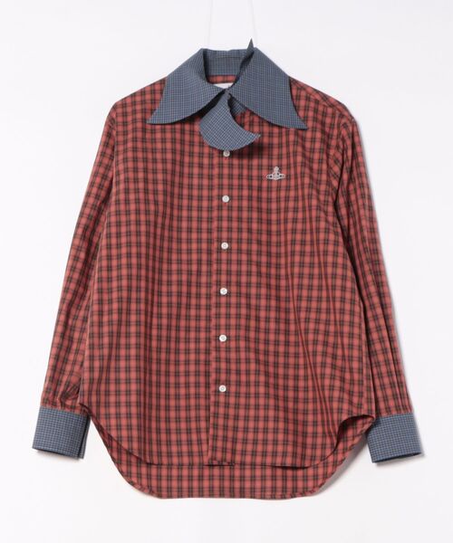 鳥の羽が羽ばたいたような襟の形状は、ヴィヴィアンのアーカイブデザインより、アレンジされたヒストリカルなディテール。襟腰高く華やかな襟元は、ブランドならでは。チェックのカラーブロックで、より存在感の光る魅力的なシャツです。※38サイズにはRED LABELのパール釦、44サイズにはMANのパール釦が