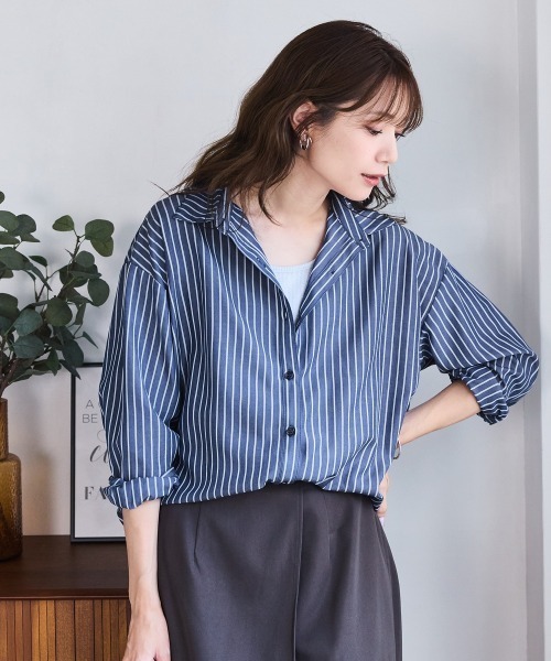 抜け感をまとう、自由なストライプシャツ■デザインシンプルながらも洗練されたストライプ柄シャツは、どんなスタイルにも合わせやすい万能アイテム。ゆったりとしたオーバーサイズシルエットが、こなれ感を演出しつつ体型カバーも叶えます。袖口をロールアップすれば、さらに軽やかな印象に。■素材肌触りのいいポリエステルとレーヨンの糸を使用し、さらりとした肌触りが一日中快適な着心地を提供します。通気性も良く、季節を問わず活躍する一枚です。ご自宅で手軽に洗濯できるので、お手入れも簡単です。■おすすめのスタイリングデニムパンツと合わせてカジュアルに、きれいめパンツと合わせてオフィススタイルに、スカートと合わせてフェミニンにと、幅広いコーディネートが楽しめます。インナーにTシャツを重ねて羽織りとして使うのもおすすめです。着回し力抜群で、ワードローブに加えるだけでおしゃれの幅がぐっと広がります。<仕様>前・袖口ボタン透け感:やや透ける ※色によって透け感が異なる場合があります。淡色カラーはベージュ系インナー着用をおすすめします。伸縮性:なし生地の厚み:普通光沢感:なし裏地:なしポケット:なし季節:秋・冬・春シルエット:ゆったり<洗濯方法>洗濯機OK ネット使用●サイズに関して●SMILELANDは大きいサイズ専門店として、サイズ設計にとことんこだわります!着心地良くおしゃれを楽しめるよう、独自のサイズ設計になっております。そのため、他ショップ様のサイズより少し大きめに感じられることがあります。<対応サイズ>を参考にしていただき、お買い物をお楽しみください。<対応サイズ>L :バスト:86~94/ウエスト:69~77/ヒップ:92~100LL :バスト:93~101/ウエスト:77~85/ヒップ:97~1053L :バスト:100~108/ウエスト:85~93/ヒップ:102~1104L :バスト:107~115/ウエスト:93~101/ヒップ:107~1155L :バスト:114~122/ウエスト:101~109/ヒップ:112~120※こちらはヌードサイズです。※平置きのアイテムサイズとは異なる計測方法となりますのでご了承ください。#ゆったり#体型カバー#二の腕カバー#大きいサイズ#プラスサイズ#大きいサイズレディース#M#L#LL#3L#4L#5L【気になる商品はお気に入り登録がおすすめ】▼商品のお気に入り登録完売カラーの再入荷通知や、ラスト1点の通知、セールの通知などお得な情報が受け取れます。▼ブランドのお気に入り登録新商品や再入荷など、ブランドのお得な情報をいち早く受け取ることができます。●SMILE LANDコンセプト●「好きな服だけ着ていたい!」自由なサイズ選びで楽しめるファッションを提案します。▼公式インスタグラム @la_smilelandプラスサイズモデルさんの着用コーデや動画など随時更新しております。是非チェックしてみてください♪