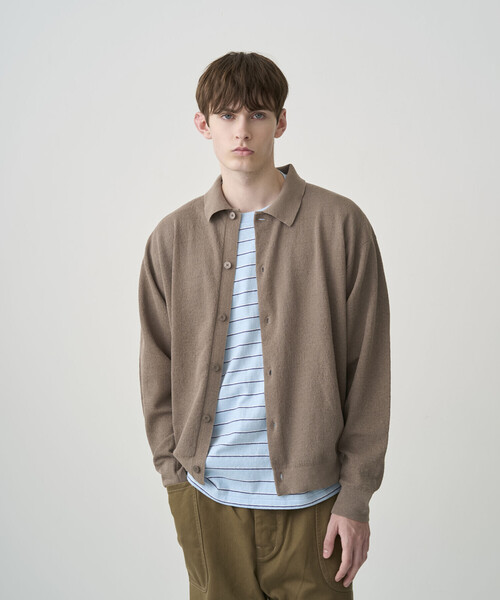 <デザイン> - 衿付きのニットカーディガン - ワイドシルエット - 適度なハリ感の立体的なシルエット - ドロップショルダー <素材> - ポリエステルとリネンをブレンドした糸を使用 - 清涼感があるドライな風合い - ハーフミラノで編み立てた独特のふくらみ ※着用、お取り扱いの際は商品についておりますアテンションタグ、洗濯ネームを必ずご確認ください。 ※モデル撮影画像は、光の当たり具合やパソコンなどの閲覧環境によって、実際の色味と異なって見える場合がございます。商品の色味は商品単体で撮影した詳細画像をご参照ください。 メーカー品番:#OR-D0139 HMN ORCIVAL | オーシバル 1939年にフランス・リヨンで設立。1950〜60年代にはフランス海軍の制服としてボーダーTシャツを提供していた、由緒あるマリンウェア・ブランド。