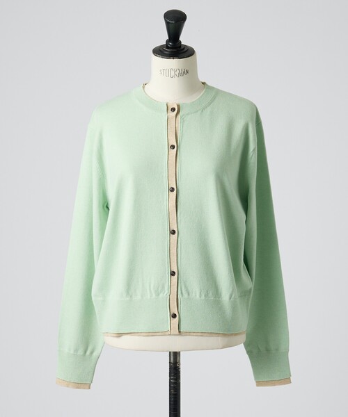 配色を楽しむ、レイヤード風カーディガン《POINT》季節の変わり目に頼れる、着回し力の高いカーディガンです。薄手ながらもほんのりとしたぬくもりがあり、寒い時期から春先まで長いシーズン活躍する1枚。気分やスタイルに合わせて選べるカラー展開!ベーシックなカーディガンのフォルムに、まるで2枚重ねているかのように、ちらりと覗く配色デザインがポイント。色の組み合わせがさりげないアクセントになり、シンプルながらもコーディネートに奥行きをプラスしてくれます。寒い時期はボタンを留めて、セーター感覚のコンパクトなトップスとして。暖かくなればフロントを開けて、軽やかな羽織りとして楽しむのがおすすめです。