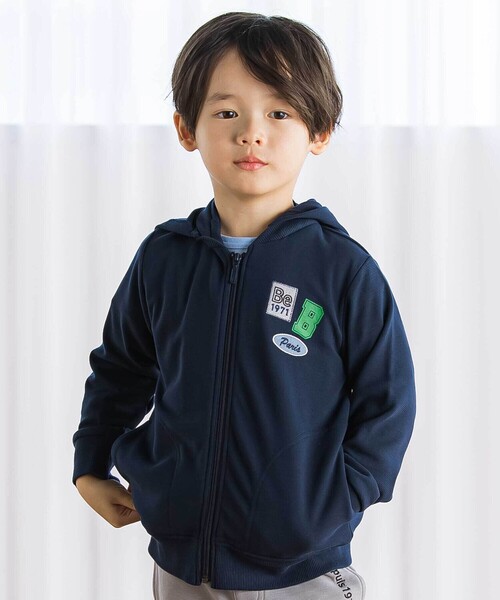 -26SS- 着回し力のある軽い着心地のジップアップカーディガン。 ■デザイン 胸元に並べたフェルトワッペンとロゴプリントがかっこいいポイント。 フードはファスナーで取り外し可能なのでコーデに合わせて使い分けできます。 スポーティーミックスにも上品コーデにも合わせやすいデザイン。 抗菌防臭加工の生地でたくさん汗をかく毎日の洗い替えにおススメです。 カラーは合わせやすさのあるネイビーとグレーの2色展開。 ■素材/機能 柔らかな生地感と程よい伸縮で着やすさのあるミラノリブの生地を使用。 体型を拾いすぎず型崩れしにくい品良く着られるニットソーです。 ※左右ポケットあり。 ※抗菌防臭・UVカットは第三者機関認証済です。 26春夏 男の子アイテム 【BEBE CLOSET】 BeBeより新しい商品ラインナップ<ベベクローゼット>が登場。 通学通園に着せやすい服をお探しのパパママの気持ちに寄り添った普段使いのワードローブにおすすめしたいアイテムを考えました。 商品タグ表記は の記載となっております。 【2026年春夏 シーズンテーマ】 -今日は何しよう?- トラッドでベーシックなアイテムやスタイリングに、軽やかな素材づかいやクリーンな発色とクラフト感あるディティールづかいで楽しさをプラス。 「今日は何しよう?」のわくわくした気持ちをファッションを通して表現します。 【BeBe(べべ)】 ”LOVE MODERN” 少しおませで、生意気なヨーロピアンカジュアルの提案。 時代性・流行性をとらえ、ベーシックでもワンポイントを施した遊び心、楽しさを盛り込んでいます。 シンプルだけど、こだわりのあるオリジナリティーを重視しています。