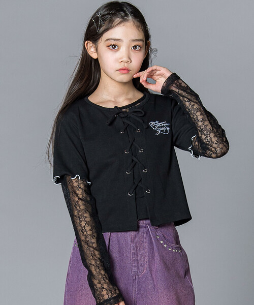 -26SS-重ねた瞬間かわいさ爆上がり♡トレンド直行Tシャツセット。■デザインフロントのレースアップが韓国トレンドにウエスタンのスパイスをひとさじプラスして、着るだけでオシャ見えするデザイン。インナーのチュールレースがひらっとのぞいて、甘め×クールのちょうどいいミックス感を叶えてくれるよ。ブラックはクールで大人っぽく、コーデが一気に引き締まるモード系の印象。グレーはふんわり柔らかい抜け感がでて、ストリートでもガーリーでも合わせやすい万能カラー。韓国JKみたいな雰囲気になれる、今っぽトレンド感満点の重ね着トップスセット。ビスチェセットとデニムにはバラ柄のおそろいタグをプラスして統一感アップ!■素材/機能アウターは伸びのよいテレコ素材で、動きやすく長時間着てもストレスフリーな着心地。インナーは軽やかなナイロンレースで、重ねてももたつかず春先まで快適に使えるのがうれしいポイント。季節の変わり目にぴったりで、半袖トップスとして単品使いもできて着回し力もバツグン。ふんわり柔らかい素材感が肌にやさしく、日常コーデにフィット。トレンドの“ウエスタンコア”を自然に取り入れられる、この春注目の万能セットアイテム。▼コーディネート1222-81501:チュールレースTシャツセット1229-81519:レースアップ・カーブパンツ(ベルト付き))【ZIDDY(ジディー)】~teen Lady~レディーストレンドを取り入れたクールでちょっぴり上品なスタイルを提案。