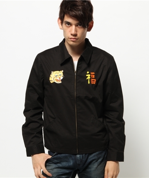 【Ciaopanic】 スーベニアジャケット 胸もとの刺繍がアクセントになったスーベニアジャケットです。衿、カフスが付いているので、シャツ感覚でさらっと羽織れます。表地が綿素材なので、肌に負担が少ないのも嬉しいポイント。両脇の裾にゴムが入っていてすっきりとしたスタイルに。カジュアルからきれい目コーデまで、幅広く着こなせる一着です。
