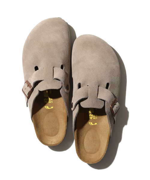 スタイルを選ばないミニマムデザイン 発売開始以来30年以上のロングセラーとなるボストン。甲は比較的高めにデザインされているためリラックスできるフィッティングです。ラテックス製クッションフォームが内蔵され、弾力性を高めたソフトフットベットも特徴のひとつです。※メーカーサイズ:「幅狭」 BIRKENSTOCK / ビルケンシュトック 自然から遠ざかった人の身体を自然な状態に解放するというコンセプトから生まれた「BIRKENSTOCK」。“第2の心臓”といわれる足を包む靴を通じて230年以上にわたり人々の健康を追及し続けている歴史のあるブランドです。デザイン性はもちろん、履き心地の良さが世界中で高く評価されています。