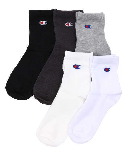 Discoat Parisien(ディスコートパリシアン) デザイン・機能性・耐久性・素材・縫製といったひとつひとつのディテールにこだわって作られている「チャンピオン」のクルーソックスを5足セットでご用意しました。ノンパイルタイプの柔らかな生地を使用。サイドにはブランドマークのワンポイントが施されています。