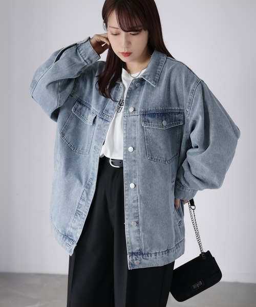 【Riberry オーバーサイズデニムジャケット】 \シンプルだから、ずっと使える/ 羽織るだけでバランス完成!着回し力抜群のデニムジャケット♪ ■Styling 程よく力の抜けたシルエットが魅力のシンプルデニムジャケットが登場しました。 ベーシックなデザインながら、ゆったりとしたサイズ感で、さっと羽織るだけで今っぽいバランスが完成する一着です。 カジュアルになりすぎず、大人っぽく着られるのもポイント。 肩まわりは落ち感のあるオーバーサイズ設計で、インナーを選ばず、ニットやスウェットの上からも着用できます! 袖口はカフス仕様で、ロールアップして抜け感を出す着こなしもおすすめです! ロゴTやロンTにさらっと羽織って、デニム×デニムの大人カジュアルスタイルに。 ワンピースやスカートに合わせれば、甘さを抑えたバランスの良いカジュアルミックスコーデが完成します。 少し寒い時期はパーカーやニットの上から重ねて、季節の変わり目には軽アウターとしても着るのも◎ トレンドに左右されず長くワードローブに寄り添ってくれる、Riberryらしいベーシックで使えるデニムジャケットです。 ■Detail フロントはスナップボタン仕様で、開け閉めしやすく、ラフに羽織れるのが魅力。 胸元にはフラップ付きポケットを配置し、デニムジャケットらしい王道ディティールを押さえつつシンプルで合わせやすい印象に仕上げました。 胸元、両サイドにはポケット付きで実用性も◎ お尻が隠れるくらいのオーバーなサイジングで、寒い時期には厚手のインナーも着込めます! ■Material 4種の混紡素材を使用しデニムならではのしっかり感はありつつ、ごわつきにくく動きやすい着心地に仕上げています。 柔らかく厚手すぎない生地感なので、季節の変わり目には軽アウターとして、寒い時期にはコートのインにも活躍します! 長時間着ても疲れにくく、デイリー使いしやすい素材感です。 ▽生地感 透け感:あり 〇〇〇〇● なし 生地の厚さ:厚い ○○●〇〇 薄い 裏地:なし 伸縮性:なし ※この素材は摩擦(特に湿った状態での摩擦)や雨、汗でぬれた際には他の衣料等に色が移ることがございますのでご注意ください。 ※お肌のデリケートな方は刺激を感じる場合がございます。 ※通販の特性上、到着時に畳みシワがついている場合がございます。予めご了承ください。 ※詳しいお手入れ方法は商品タグをご参照ください。 【Information】 ◆《お気に入り登録》がオススメ◆ ・「商品のお気に入り登録」で再入荷通知や、ラストの通知、セール通知も受け取ることが出来ます。 ・「ブランドのお気に入り登録」で新商品や再入荷など、お得な情報を受け取ることが出来ます ※撮影時のライティング、ご覧になっているモニター・PC環境により、実際の商品と色味が異なって見える場合がございます。予めご了承をお願い致します。