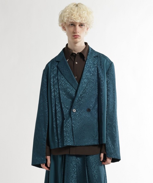 ーーー 繊細なジャガード柄とクロップド丈が融合した、モードなレイヤードスタイルを完成させるダブルジャケット。 ーーー DESIGN クラシックな雰囲気漂う繊細なジャガード柄を全面にあしらった、存在感抜群のショート丈ジャケット。 トレンドのショート丈(クロップド丈)に設定することで、ウエスト位置を高く見せ、圧倒的な脚長効果とスタイルアップを実現します。 フロントはダブルブレスト仕様で、重厚感がありながらも、コンパクトなシルエットによりモダンで軽やかな印象に。 身幅や袖幅にはゆとりを持たせているため、デザインシャツやニットの上からでも窮屈感なくレイヤードを楽しめます。 MATERIAL ポリエステルをベースにポリウレタンを混紡した、適度なハリと伸縮性のあるジャガード生地を使用。 織りによる凹凸感が柄に奥行きを与え、プリントにはない高級感とラグジュアリーな雰囲気を演出します。 裏地付きで袖通しも良く、しっかりとした仕立てのアウターです。 SET ITEM セットアップ対応パンツはコチラを検索→【643497】 ※サンプルにて撮影をしておりますので、実際の商品とは仕様や加工・サイズ等が若干異なる場合がございます。 ※屋外の光や照明の当たり具合で、実物と色味が異なって見える場合がございます。詳細画像の色味をご確認ください。 なお、商品の色や質感を出来るだけ忠実に再現するよう心掛けておりますが、パソコンなどの環境により、実物と若干異なる場合がございます。 ※写真を許可無くコピー・転用することは固くお断りします。