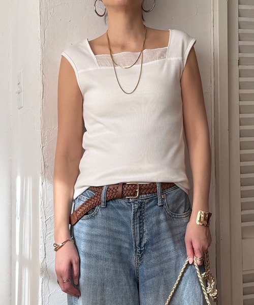 胸元にシアー素材を重ねた、ほどよくニュアンスのあるタンクトップ。スクエアネック仕様で、カーディガンやジャケットなど羽織りアイテムと相性のよいデザインです。一枚着はもちろん、レイヤードスタイルにも取り入れやすいアイテムです。★《お気に入り登録》でお得な情報がいっぱい★・「商品のお気に入り登録」で再入荷通知や、ラスト1点の通知、セール通知も受け取ることができます。・「ブランドのお気に入り登録」で新商品や再入荷など、お得な情報を受け取ることができます!※ご覧のモニター環境により、画像の色味と多少異なる場合がございます。※他のキャンペーンにより、期間中に価格が変動する場合があります。※セールは予告なく終了させていただく場合もあります。