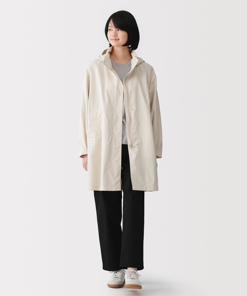 水を弾きやすい撥水加工の生地を使いました。紫外線から肌を守ります。 【素材】 シワが目立ちにくいナイロン素材を使用しています。撥水・防風加工に加え、UVカット機能も備えており、天候を気にせず軽やかに羽織れる一着です。 【デザイン】 袖口にボタンがついており、雨風の侵入を防ぎます。フードはたたんでスタンドカラーに収納でき、襟を立てることで保温性を高めています。 【仕様】 生地の厚さ:中厚手 フィット感:ゆったり目 お取扱い上のご注意 : ●濃色製品は使用中の摩擦や濡れた状態での接触により色移りする事があります。洗濯の際は他のものと分けて洗ってください。 お取扱い上のご注意2 : ●はっ水(水をはじきやすい)洗濯・クリーニングにより徐々にはっ水効果がなくなります。 お取扱い上のご注意3 : ●本体に再生ナイロンを60%使用しています。 お取扱い上のご注意4 : ●紫外線遮蔽率90%以上(紫外線遮蔽加工品)。●表示通りの洗濯処理10回まで効果を確認しています。●生地の色や柄によりUVカット効果に差が生じます。長時間の屋外使用ではUVカット効果が得られにくいことがあります。 お洗濯上のご注意 : ●淡色製品には蛍光増白剤入り洗剤を使用しないでください。 お洗濯上のご注意2 : ●付属部分にアイロンを当てないでください。 お洗濯上のご注意3 : ●アイロンはあて布を使用してください。 お洗濯上のご注意4 : ●洗濯ネットをご使用ください。