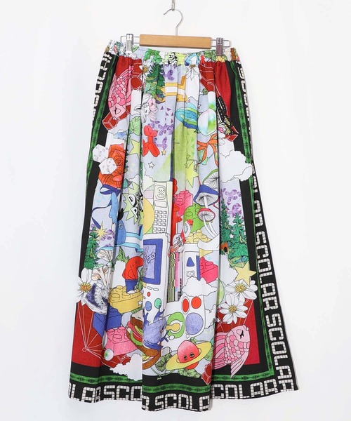 + ScoLar 商品 +■デザイン懐かしさを感じるゲーム機や電話をはじめ、さまざまな動物やキャラクターたちが描かれたレトロで不思議な世界観が広がるとびきりポップでカラフルなデザイン。両サイドと裾にロゴ入りラインでエッジを効かせたカワイさとカッコよさを兼ね備えた仕上がり。■素材ふわっと広がるボリュームシルエットトレンドのワッシャー加工でくしゅくしゅっとした生地感がカワイイです!■コーディネート同柄ブルゾンと合わせた統一感あるセットアップ風コーデがオススメ。■スタイリング・同柄itemはコチラ⇒【161626】●model:Hana. 160㎝/63inch●model着用:63(パープル)(着用商品はサンプルの為、実際のデザインと変更がある場合がございます)ーーーーー裏地:なし透け感:やや透け感あり生地の厚さ:普通生地感:やわらかめ伸縮性:なしポケット:ありーーーーー(内側に)ウエスト調節紐あり取り扱いのご注意:※この製品は摩擦や水濡れにより色落ちにすることがありますのでご注意ください。※この製品は生地独特な風合いを出すために、製品加工してあります。(製品は1点、1点多少表情が違います)※この商品は糸及び編組織の性質上、引っ掛け・引っ掛かりやすい為、着脱時や取り扱いにご注意下さい。