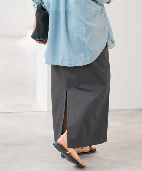 きれいめに映えて、着回しも効くドライトロIラインスカート。 しなやかな風合いと程良いストレッチ性を備えたトロ素材を使用し、上品に着こなせるバランスにこだわった一枚。すっきりとしたIラインシルエットが大人らしい印象を演出します。 ベルトループやコインポケットなど、トラウザーズのようなウエストディテールを取り入れ、シンプルながらもさりげないデザイン性をプラス。 きれいめブラウスを合わせたオンスタイルはもちろん、チェックシャツやプリントTシャツと合わせたカジュアルミックスもおすすめです。 幅広いアイテムと好相性で、シーズンレスに活躍するスカートです。 ※取り扱いについては、商品についている品質表示でご確認ください。 ※こちらの商品は、Spick & Spanでの取り扱いになります。 直接店舗へお問い合わせの際は Spick & Span店舗へお願い致します。 ※照明の関係により、実際よりも色味が違って見える場合があります。 またパソコン・スマートフォンなどの環境により、若干製品と画像のカラーが異なる場合もございます。 ※商品の色味は、商品アップ画像をご参照ください。 本体:手洗い可能