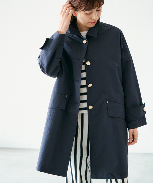 メーカー品番:L261HI1158BGALK 弊社カラー:メーカーカラー グレーB(008):GRAGE ネイビー(040):NAVY 弊社サイズ:メーカーサイズ 036:6 038:8 ドロップショルダーのステンカラーショートコート「HUMBIE/ハンビー」。 ニュアンスのある上品なグレージュ(グレーB)は、IENAだけの別注カラー。 高密度で織り上げた撥水ポリエステルタフタ素材は、適度なハリ感があり美しいシルエットを演出。 綿のようなナチュラルで清涼感のあるタッチで、軽い着心地が魅力です。 撥水素材のため、梅雨時期にもおすすめ。 女性らしいAラインフォルムでシーンやスタイルを選ばないデザイン。 ブランドロゴを配したゴールドボタンが映えるリュクスなムード漂う一着です。 【MACKINTOSH/マッキントッシュ】 イギリス・スコットランドに本拠地を置くブランド。 チャールズ・マッキントッシュが1830年に世界で初めてコットン生地に天然ゴムベースのオリジナル素材を塗布した防水生地コートを発表。 その後、防水素材をコットン生地で挟む「マッキントッシュ・クロス」へと進化しました。 英国らしいクラフトマンシップ溢れるクオリティの高さで、日本でも抜群の知名度を誇ります。 近年では過去の名作たちをモデル名から変更し、デザイン性をさらにブラッシュアップ。 クラシックでありながらもモダンなコレクションを展開し、ますます目の離せないブランドへと進化を続けています。 ********************** 透け感:なし 裏地:なし 伸縮性:なし 光沢感:ややあり 生地の厚さ:普通 ********************** こちらの商品は、IENAでの取り扱いになります。 直接店舗へお問い合わせの際はIENA店舗へお願い致します。 ※取り扱いについては、商品についている品質表示でご確認ください。 ※照明の関係により、実際よりも色味が違って見える場合があります。 またパソコン・スマートフォンなどの環境により、若干製品と画像のカラーが異なる場合もございます。 ※商品の色味は、商品アップ画像をご参照ください。 グレーB着用スタッフ身長:160cm 着用サイズ:36 ネイビー着用スタッフ身長:160cm 着用サイズ:36 詳細着用スタッフ身長:159cm 着用サイズ:36 本体:ドライクリーニング