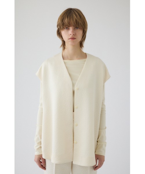 RIM.ARK(リムアーク)のGlossy JQ shape vest グロッシージャガード シェイプ ベスト (460JSL30-1641)レーヨン混による光沢感が美しく立体的な凹凸感が特徴の膨れジャガード生地で仕立てたベスト。 ウエストをややシェイプさせたシルエットで、上品かつシックに決まるアイテム。 ミニマムなデザインに落とし込むことで、生地の美しさが最大限活かされた1着です。 特別なひとときでの着用やお仕事着としてもおすすめ。 共生地で製作したGlossy JQ tapered PT(460JSL31-1651)とのセットアップ着用で、より洗練された知的で品格のあるルックが実現します。 [注意事項] ※画像の商品はサンプルです。実際の商品と仕様、加工が若干異なる場合があります。 ※画像の商品は光の照射や角度、お使いのモニター環境により、実物と色味が異なる場合がございます。 ※着用、お取り扱いの際は、アテンションタグをご確認ください。 ※弊社管理上のカラーを表記しており、タグのカラー表記と異なる記載となっている場合がございます。 ▼商品のお気に入り登録 お気に入りアイテムの値下げ・再入荷・在庫1点などの通知を受け取ることができます。 ▼ブランドのお気に入り登録 新作アイテムの入荷や人気アイテムの再入荷、タイムセールやクーポンなど、いち早くブランドのお得な情報を受け取ることができます。 【RIM.ARKについて】 凛とした強さ、知性、品格。揺るぎない「芯」。 RIM.ARKが目指すのは、自立した女性の美しさを引き立てる服。 無駄を削ぎ落としたシンプルでミニマルなデザイン。 ものづくりの息吹が感じられる素材、立体的なシルエット。 トレンドにとらわれない、タイムレスで本質的なアイテムを通して纏う人の内面的な豊かさを表現したいと考えます。 春服 夏服 春 夏 オケージョン フォーマル セレモニー オフィスカジュアル 卒業式 卒園式 入学式 入園式 セレモニー フォーマル 入卒園 卒業 入学 入園 卒園 ハレの日 セットアップ