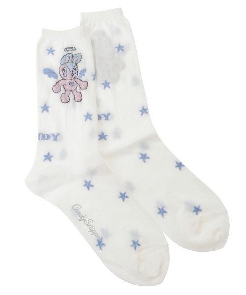 イラストレーターあきらんど氏描き下ろしのポップなイラストをジャガードで編み立てたソックス。柄部分にはラメ糸を使用しており、コーディネートのアクセントになる一足です。――――――――――――――あきらんどカラフルでのびのび、「かわいい」と「たのしい」をぎゅっと詰め込んだハッピーでポップなイラストを描くイラストレーター。オリジナルキャラクターを中心に、毎日がちょっと楽しくなるような作品を制作している。――――――――――――――・ ・・・・・・・・・ ・・・・・・・・・透け感::なし・伸縮性:あり・生地の厚さ:普通・ ・・・・・・・・・ ・・・・・・・・・オフホワイト/白、ライトブルー、ブラック/黒の3色展開#カジュアル#うさぎ#エンジェル#天使#キャンスト#キャンスパ#CND●Candy Stripper/キャンディストリッパー●-BRAND CONCEPT-NO RULE, NO GENRE, NO AGE年齢や性別にとらわれず、自由に自分を表現出来る服【お買い物をもっとお楽しみ頂くために】▼商品のお気に入り登録▼完売カラーの再入荷通知や、ラスト1点通知、プライスダウンしたセール通知も受け取れる♪▼ブランドのお気に入り登録▼新作や再入荷等、いち早くブランドのお得な情報が受け取れる♪
