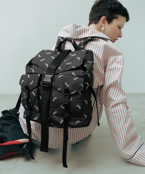 《別注》-SELECT ITEM- ◇26SS◇ ADAM ET ROPE' FEMME 店舗発売開始日:3月6日(金) ※順次発送予定のため店舗販売開始日よりも早めに発送される場合がございます この度、GANNi for ADAM ET ROPÉ ご好評につき、 2月28日(土)よりADAM ET ROPÉ ルミネ7店舗限定で先行発売いたします。 実際にお手に取ってご覧になれるこの機会にぜひADAM ET ROPÉルミネ店舗へお立ち寄りください。 ◾️先行発売日 2月28日(土) ◾️先行発売店舗 ルミネ(有楽町店・新宿店・池袋店・北千住店・横浜店・大宮店・立川店) 絶大な人気を誇るコペンハーゲンのブランド「GANNI(ガニー)」とADAM ET ROPE'による2026SSコレクションを新たにローンチ。 今回はあらゆるスタイリングに自然と溶け込むモノトーンカラーを採用し、 日本では、ADAM ET ROPE'でしか手に入らないエクスクルーシブなモノグラム柄が主役を飾ります。 トレンド感とタイムレスな魅力を両立させた、特別なコレクションをお届け。 世界各国のGANNI直営店、日本国内はADAM ET ROPE'だけのエクスクルーシブ発売です。 【Design】 調節可能なパッド入りショルダーストラップ、トップハンドル、フロントバックル留め具にフロントポケット、折りたたみ式トップなどの汎用性あるバックパック。ラバー製のGANNIロゴパッチがさりげないアクセントに。 [GANNI/ガニ—] 2009年に、デンマーク・コペンハーゲンを拠点に誕生したファッションブランド。クリエイティブディレクターのディッテ・レフストラップと、ファウンダーのニコライ・レフストラップの夫婦により設立。鮮やかな色使いとプリントを組み合わせた、カラフルなコレクションを得意とし、「Scandi 2.0」ともいうべき北欧の新スタイルを提示。洋服作りの過程では、地球環境への負荷を最小化したサステナブルなアプローチを重視。 --------------- ■メーカー品番 B2010022 --------------- ■メーカーカラー表記(JUN表記) Black(ブラック) --------------- ■メーカーサイズ表記(JUNサイズ表記) F(F) --------------- ※撮影時の光、お使いのモニター環境によって色の見え方が違う場合がございます。