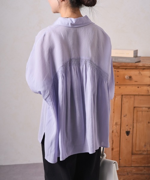 -商品ポイント- ・さらりとした肌触りで暑い季節でも快適、かつバックのシャーリングが目を惹くオトナブラウス。 ・程よい透け感で、オトナの上品さを演出。 ・ゆったりとしたリラックスフィットで、体型を選ばず着用可能。 ・パンツやスカートとの相性も良く、一枚でさらりと着ても、ノースリーブやキャミソールの上から羽織としても活躍する万能アイテムです。 ・縫製仕様を見直し、より快適な着心地に仕上げました ーマテリアルー ■透け感:あり ■裏地:なし ■伸縮性:袖口、背中のシャーリング部分あり ■光沢感:なし ー洗濯方法ー 手洗い可能 ー注意事項ー ・画像の商品はサンプルです。 実際の商品と仕様、加工が若干異なる場合があります。 ・サイズ表記はあくまで目安となります。 【お買い物をよりお楽しみいただくために】 ―気になるアイテムはお気に入り登録をしておくと便利です― ・お気に入り登録した商品はメニューの「♡お気に入り」ボタンから、一覧表示することができます。 ・商品の再入荷・在庫ラスト1点などの情報を受け取ることができます。 ・値下げやクーポン情報を受け取ることができます。 ・予約商品は通常商品切り替わり時にお知らせがきます。 スマートフォンの場合・・・商品画像右上に表示されている「♡」をタップしてください。 パソコンの場合・・・「カートに入れる」ボタン横に表示されている「♡」をクリックしてください。 ーPALCLOSETアプリのブランドフォローがおすすめですー ・新商品やお得な情報をいち早くcheckする事が出来ます。 ・スタッフコーディネートや店舗ごとのブログをお楽しみ頂けます。 __________________________________ ※取り扱いについては、商品についている品質表示でご確認ください。 ※照明の関係により、実際よりも色味が違って見える場合があります。 またパソコン・スマートフォンなどの環境により、若干製品と画像のカラーが異なる場合もございます。予めご了承ください。 ※詳細画像の色合いをご参照ください。予めご了承ください。
