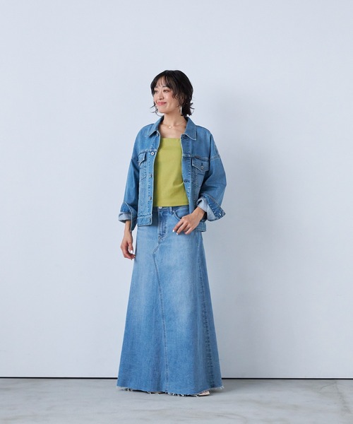★STORY(ストーリー) 3月号 P.95掲載アイテムワイドパンツをリメイクしたようなカットラインがポイントのAラインスカート【Silhouette】腰回りはすっきりとした作りで、ミドルウエストで窮屈感がないのが嬉しいポイント。裾に向けてたっぷりとフレアを出したシルエットが新鮮な1枚です。後ろには深めのスリットが入っているので足捌きも良く、軽やかにみえます。【Fabric】YANUK定番のストレッチデニムです。肉感を拾いにくい適度なハリ感がありながらも柔らかい穿き心地で、軽やかな落ち感を実現しています。【Color】ユーズドライクのライトブルーです。オーバーダイを施しているのでベージュがかったブルーがトレンド感を演出してくれます。程よいライトブルーでシーズンレスかつトップスのカラーも選ばない汎用性の高い1枚です。●YANUK2003年よりスタートしたL.A.発のデニムブランド" YANUK (ヤヌーク) "誕生以来、計算されたカットワーク、ステッチ、本格的な加工により女性のための美しいラインを追求し続けています。ヤヌーク最大の魅力はシルエットの美しさにあります。選び抜かれた素材と絶妙なカッティング、心地よい穿き心地。時代によってトレンドは変わっても、ファッションを愛する女性たちに優しく寄り添い、着こなしが楽しくなるような最愛のパートナーでありたいと願っています。