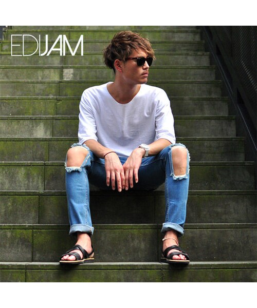 EDIJAMからトレンド感溢れるダメージデニムが登場! ブランド初となるデニムアイテムは細かなディテールに拘った1本。 激しめなダメージはコーディネートにインパクトを与え、シンプルなトップスはもちろん デザイン性の高いアイテムとも相性抜群。 スキニーシルエットですがストレッチ素材使用で履き心地にもしっかり配慮。 オールシーズン使えるデニムアイテムは是非手にしてほしい1枚です。 ◆SIZE INFO (cm)平置き採寸 S:ウエスト36 股上22 股下73 わたり23 裾幅16 M:ウエスト38 股上23 股下74 わたり23 裾幅16 L:ウエスト 41 股上24 股下75 わたり24 裾幅17 MODEL:YASU 181cm 70kg Lサイズ着用