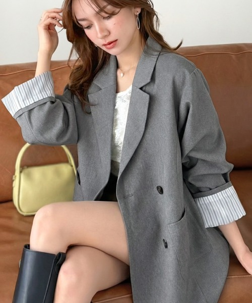 【お気に入り5,000人突破!】 オーバーサイズで、今っぽさをしっかり演出♪羽織るだけでコーデが決まる、主役級アウター◎ さりげない遊び心を仕込んだ、大人ガーリーなテーラードジャケット。 ゆったりとしたシルエットで抜け感たっぷり◎折り返してちらりと見える配色裏地が、着こなしにさりげないアクセントを+♪季節を問わず活躍する万能ジャケットです。 ■point・トレンド感のあるオーバーサイズ設計・配色デザインの裏地・シーズンレスで着用できるツイル素材 ■detailゆったりとしたオーバーサイズシルエットが、こなれた印象を演出してくれるダブルジャケット。トレンド感のあるデザインで、ショートパンツやミニスカートとも好相性♪裏地にはストライプ柄を採用しており、袖口を折り返してさりげなく見せることで、コーデに遊び心のあるアクセントをプラスできます。シンプルな表情の中に、細部でおしゃれを楽しめる仕上がり。カジュアルからきれいめまで幅広く対応し、スタイリングの幅を広げてくれる一枚です◎ ■fabric季節を問わず着用できるツイル生地を使用。程よいハリ感で、シルエットをきれいに保ちやすい素材感。……………………透け感:なし厚さ:普通伸縮性:なし裏地:あり洗濯方法:手洗い……………………※詳しいお手入れ方法は商品タグをご参照ください。 ■coordinate テーラードジャケットは、スタイリッシュでありながらカジュアルにも着こなせる万能アイテム☆ トレンド感を出したい時は、シアートップスを使ったレイヤードスタイルに羽織ることで、上品さとヌケ感を演出します♪ デニムと合わせれば、カジュアルながら洗練された印象に。 フレアパンツを選ぶとクールモード感もアップし、スタイルアップ効果も抜群! また休日スタイルにはTシャツとの組み合わせもおすすめ。リラックス感を出しつつ、ジャケットでキレをプラスします☆ エレガントやフェミニンな印象にしたい時は、レースアイテムやロングスカートを合わせるのがおすすめ♪ 足元にパンプスやローファーを持ってくることで、全体のバランスを取ります。 オフィスにもお出かけにも使えて、シーンに応じた多彩なスタイルが楽しめる優秀アイテムです! 【mily biletとは】"もっと自由に もっとかわいく もっと自分を好きになる"そんな願いを叶えるブランド。トレンド×ベーシックに「ガーリー」をmixした、ちょっぴり甘いがコンセプト。今欲しいファッションを手軽に楽しめて、思わずシェアしたくなる、ときめくアイテムを提案します。 ■SNS 新着アイテムやお得なセール情報を毎日配信中♪ コーデのご参考にも...♡ 【公式 Instagram】 @classicalelf_official @milybilet_official(mily bilet) 【公式 TikTok】 @classicalelf_official ※ご覧のモニター環境により、画像の色味と多少異なる場合がございます。 ★《お気に入り登録》でお得な情報がいっぱい★ ・「商品のお気に入り登録」で再入荷通知や、ラストの通知、セール通知も受け取ることができます。 ・「ブランドのお気に入り登録」で新商品や再入荷など、お得な情報を受け取ることができます!