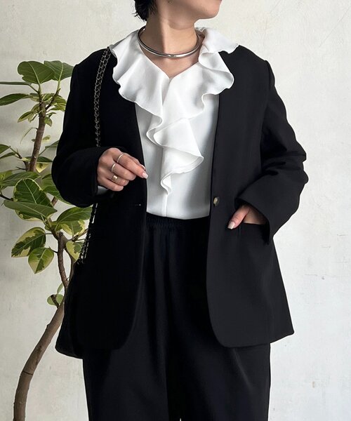 セレモニーシーズンにおすすめのきれいシルエットジャケット ‐POINT‐ ・1つボタンのシングルジャケット ・高い位置でウエストが絞られたようなデザインですっきり見え ・首元はスタイリッシュで華やかなVゾーンを演出するデザイン ・シンプルなので、ブラウスやTシャツ等どんなインナーにも合わせやすい -------------------------------- お手入れ:手洗い可 透け感:なし 裏地:あり 伸縮性:なし ポケット:あり 光沢:なし 生地感:普通 -------------------------------- 【♡をクリックでお得な情報をお知らせいたします】 〈商品のお気に入り登録〉 お気に入りアイテムのお値下げ・再入荷・在庫ラスト1点など通知を受けることができます。 〈ブランドのお気に入り登録〉 un dix corsの新商品や再入荷、セール、クーポン配布などお得な情報を受けとることができます。 -------------------------------- ※掲載商品のお色味は撮影場所やお使いのモニター環境により若干異なる場合がございます。 特に、ロケ撮影では明るく見える傾向にございます。予めご了承ください。 ※生産の都合上、お届け時期が前後する場合がございます。 ※着用、お取り扱いの際は商品についている品質表示とアテンションタグを必ずご確認ください。