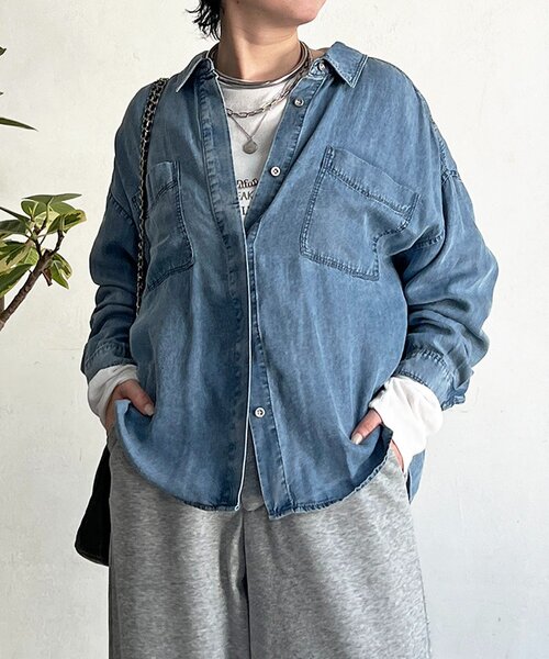 オトナ素材のデニムが幅広いスタイルにマッチする優秀デニムシャツ‐POINT‐・落ち感があるとろみ素材で、女性らしい印象に・上品な雰囲気を引き出すシルクのような自然な光沢感・再生繊維ならではの肌触りで着心地抜群・羽織りとしてもトップスとしても活躍◎--------------------------------お手入れ:液温は30℃を限度とし、洗濯機で非常に弱い洗濯処理ができる。透け感:OFFのみややあり裏地:なし伸縮性:なしポケット:あり光沢:なし生地感:やや薄手--------------------------------【♡をクリックでお得な情報をお知らせいたします】〈商品のお気に入り登録〉お気に入りアイテムのお値下げ・再入荷・在庫ラスト1点など通知を受けることができます。〈ブランドのお気に入り登録〉un dix corsの新商品や再入荷、セール、クーポン配布などお得な情報を受けとることができます。--------------------------------※掲載商品のお色味は撮影場所やお使いのモニター環境により若干異なる場合がございます。特に、ロケ撮影では明るく見える傾向にございます。予めご了承ください。※生産の都合上、お届け時期が前後する場合がございます。※着用、お取り扱いの際は商品についている品質表示とアテンションタグを必ずご確認ください。
