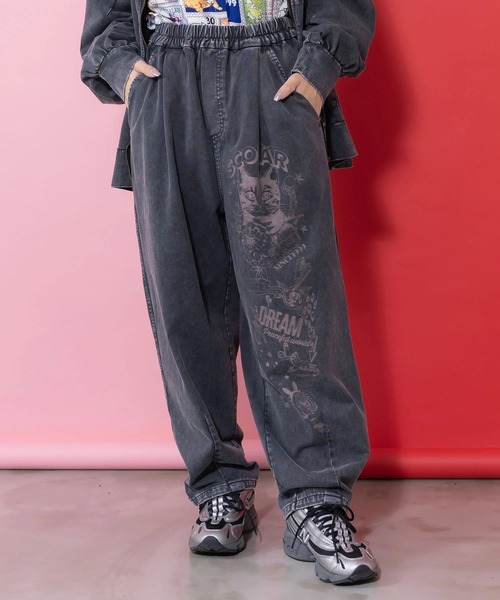 ☆ScoLar☆ ヘビーウェイト 天竺パンツレトロで、目を惹くデザインの【ScoLar/スカラー】からパンツが登場。スノーパウダー加工を施し、味わい深い風合いに仕上げたカーブパンツ。チョークで描いたようなラフタッチのイラストをアクセントに、落ち着いた色合いの中にさりげない個性をプラスしました。ウエストはやわらかな総ゴム仕様でゆったりとした履き心地。ラクで動きやすく、デイリーに取り入れやすい穿き心地が魅力です。カラーは普段のコーデに取り入れやすいブラック、差し色にも使えるやわらかな色合いがカワイイピンクをご用意いたしました。サイドとバックにポケット付きで実用性も兼ね備えた、機能面でも優秀なアイテムです◎※この製品は摩擦や水濡れにより色落ちにすることがありますのでご注意ください。※この製品は生地独特な風合いを出すために、製品加工してあります。(製品は1点、1点多少表情が違います)※この商品は糸及び編組織の性質上、引っ掛け・引っ掛かりやすい為、着脱時や取り扱いにご注意下さい。※着用、お取り扱いの際は、商品についている品質表示とアテンションタグを必ずご確認下さい。【ScoLar/スカラー】コーディネートの主役になれる服をコンセプトにデザインはレトロな雰囲気を彷彿させる、独創的でインパクトのあるプリントが中心。ワクワク・ドキドキ感のあるカジュアルファッションを提案します
