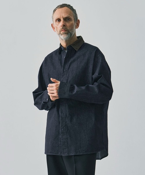 ■デザイン25AWデニムシャツをベースに、襟をレザーへ変更した別注モデル。シャツとしてはもちろん、アウター感覚でも着用できる一着に仕上げました。比翼仕様のフロントと袖先には、ブラック染めの小さなドットボタンを採用し、ミニマルでソリッドな印象に。ゆとりのある袖幅と太めの袖口が、程よいリラックス感を演出します。裾はラウンドカット、長めの着丈と身幅に余裕を持たせたボックスシルエットで、レイヤードにも最適です。■素材・裏地:なし・伸縮性:なし・光沢感:なし・生地の厚さ:普通メーカー品番:2256-BL02-009-N.HOOLYWOOD-Designer 尾花大輔MISTER HOLLYWOODは会社名及び店舗名で、N.HOOLYWOODがブランド名。古着やヴィンテージをベースとした服作り、シルエットと着心地にもこだわりを持つ。また、ミリタリーもルーツとなっている。尾花大輔は古着屋「go-getter」の立ち上げに参加し、その当時、古着の買い付けでアメリカのハリウッドに行っていたことで、ミスターハリウッドと呼ばれるようになった。これが「ミスターハリウッド」の由来。その後、2000年、「ミスターハリウッド」をオープン。2002年春夏コレクションより「N.HOOLYWOOD」のブランドで東京コレクションにデビュー。正しいハリウッドの表記は「HOLLYWOOD」であり、「N.HOOLYWOOD」は遊び心から綴りを変えている。【THE TOKYO】ファッションを楽しむ大人をターゲットに高感度なN.HOOLYWOOD(エヌハリウッド)、White Mountaineering(ホワイトマウンテニアリング),Comme des Garcons(コムデギャルソン)などの日本ブランドを拘りセレクトしているセレクト型コミュニティストア。※Comme des Garcons(コムデギャルソン)はZOZOTOWNで取り扱いはございません■商品のお気に入り登録(♡をクリック)・ラスト一点、再入荷、セール時の通知を受け取れます。・クーポンやタイムセールの通知を受け取れます。・お気に入り商品を一覧でご覧になれます。・実店舗でのショッピングでもお役に立ちます。■ブランドのお気に入り登録・新作やイベントなどブランドのお得な情報を受け取れます。