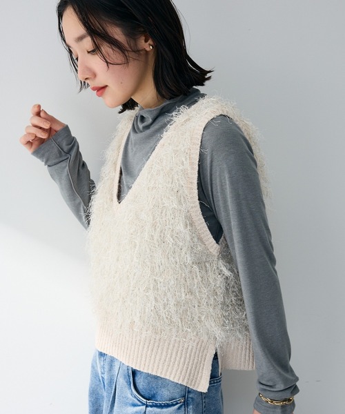 ふんわり毛足とラメが叶える、大人の上品カジュアル 毛足のあるニット素材にラメを織り交ぜることで、派手すぎない上品な輝きを楽しめます。柔らかな風合いが体になじみ、重ね着してもごわつきにくいのが魅力です。 ベストデザインは、レイヤードするアイテム次第で印象を変えられ、コーディネートの幅が広がります。 シンプルなボトムスと合わせるだけで、華やかさのあるカジュアルスタイルが完成します。 普段使いからちょっとしたお出かけまで頼れる一着です。 透け感[なし] 生地の厚さ[普通] 光沢感[ややあり]伸縮性[ややあり] 裏地[なし] ポケット[なし] ※モデル着用画像は、光の当たり具合で色味が違って見える場合がございます。 ※お使いのモニター環境によって商品の色味が違って見える場合がございます。 ●Green Parks (fuuwa / topic / sara)● (グリーン パークス) 20以上の人気ブランドを取り扱う、全国に約320店舗展開するアパレルセレクトショップ。 ベーシックながらもさりげなくトレンドを取り入れたオリジナルブランドchocol raffine robeも展開。 ▼ 商品のお気に入り登録がおすすめです ▼ 商品ページ内のハートマークをクリック。完売時の再入荷や、最後の1点の通知、コーディネート画像がアップされたとき、お得なお値下げの際の通知を受ける事ができます。 【お知らせ】ページでも通知が確認できます。
