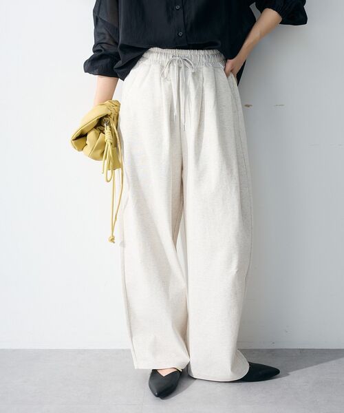 心地よさと美しさを両立した大人のスウェットほどよい厚みのスウェット素材が、やさしく肌に寄り添い、リラックスした穿き心地を提供します。立体感のあるコクーンシルエットが、ヒップや太ももを自然にカバーし、すっきりとした印象に導きます。ウエストはゴムとひも仕様でサイズ調整がしやすく、日常の動きにも柔軟に対応します。シンプルで洗練されたデザインのため、カジュアルシーンはもちろん、きれいめアイテムと合わせたミックススタイルもおすすめです。ラフすぎない見た目で、外出時にも自信を持って着用できます。毎日使いたくなる快適さと、着回し力の高さが魅力です。透け感[なし]生地の厚さ[普通]光沢感[なし]伸縮性[ややあり]裏地[なし]ポケット[あり]※モデル着用画像は、光の当たり具合で色味が違って見える場合がございます。※お使いのモニター環境によって商品の色味が違って見える場合がございます。●Green Parks (fuuwa / topic / sara)●(グリーン パークス)20以上の人気ブランドを取り扱う、全国に約320店舗展開するアパレルセレクトショップ。ベーシックながらもさりげなくトレンドを取り入れたオリジナルブランドchocol raffine robeも展開。▼ 商品のお気に入り登録がおすすめです ▼商品ページ内のハートマークをクリック。完売時の再入荷や、最後の1点の通知、コーディネート画像がアップされたとき、お得なお値下げの際の通知を受ける事ができます。【お知らせ】ページでも通知が確認できます。