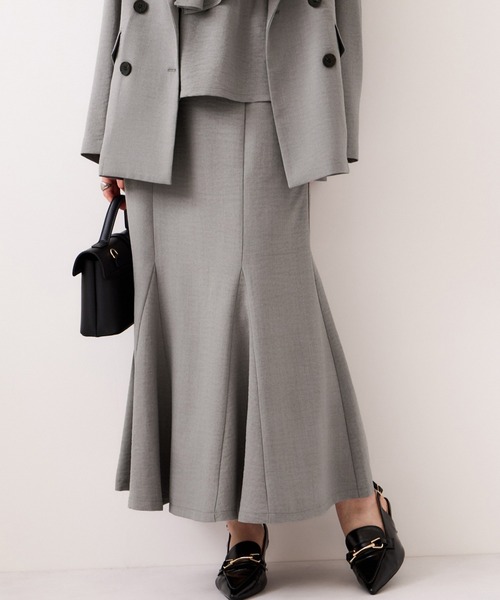 VISで人気の美easyシリーズ、マーメイドスカートがバージョンアップして新たに登場!【2026 Spring/Summer】【26SS】 <美easyシリーズ> ・自宅でのお洗濯が可能!イージーケアが叶う ・ソフトタッチの風合いで着心地の良い合繊素材を使用 ・美シルエット&セットアップ対応可能で、簡単にキレイにコーデが決まる ・地球環境に優しいエコ素材を使用 <POINT> ・シワになりにくい素材を使用しているので、デスクワークや長距離移動など長旅の持ち運びにも最適 ・暑い時期に嬉しい肌に触るとひんやりする接触冷感機能付き ・マシンウォッシャブル可能 ・地球環境にやさしい再生ポリエステルを使用 ・同素材のセットアップ対応アイテムを複数展開 ・コーディネートを悩まずにおしゃれに時短が可能! 【デザイン・シルエット】 ウエストのサイドベルトがデザインポイントでもあり、アジャスターとしての機能性もある細見えするシルエットのマーメイドスカートです。 裾のマチ切り替えが歩く時の裾の揺れ感が女らしさをアップしてくれます。 【素材】 地球環境に優しい再生ポリエステルを使用しています。 シーズン長くお召しいただける素材感。(サラリとした風合いのシワになりにくい合繊素材) ご自宅でのお洗濯も可能でお手入れしやすく、デイリーユースにぴったりの一着。 【カラー】 着易いベーシックなブラック、大人シックなマニッシュグレー、キナリ、ニュアンスのあるライトピンクの4色展開です。 【おすすめのスタイリング】 美easyリネンライクシリーズのビスチェドッキングブラウス(品番BVM36100)、ジャケット(品番BVV36100)などのセットアップがおすすめです。また、Tシャツなどで女っぽいカジュアルスタイリングも◎! ----------------------------- 裏地:なし 光沢感:なし 透け感:ややあり(キナリ、ピンク系) 伸縮性:なし ウエスト:後ろ一部ゴム ファスナー:あり ポケット:あり 生地の厚さ:やや薄手 その他仕様:サイドのボタンでウエスト調整ができます。 季節:春、夏、秋 ----------------------------- 【モデル着用サイズ】 身長:161cm 着用サイズ:M ※画像の商品はサンプルです。 実際の商品と仕様、加工、サイズが若干異なる場合がございます。 ※画像によっては実際の色味と異なる場合があります。正しい色味は生地アップ画像をご確認ください。