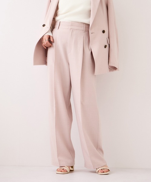 【2026 Spring/Summer】【26SS】<美easyシリーズ>・自宅でのお洗濯が可能!イージーケアが叶う・ソフトタッチの風合いで着心地の良い合繊素材を使用・美シルエット&セットアップ対応可能で、簡単にキレイにコーデが決まる・地球環境に優しいエコ素材を使用<POINT>・シワになりにくい素材を使用しているので、デスクワークや長距離移動など長旅の持ち運びにも最適・暑い時期に嬉しい肌に触るとひんやりする接触冷感機能付き・マシンウォッシャブル可能・地球環境にやさしい再生ポリエステルを使用・同素材のセットアップ対応アイテムを複数展開・コーディネートを悩まずにおしゃれに時短が可能!【デザイン・シルエット】今シーズンでは、ウエスト部分にピンタックを施してベルト無しでもサマになるパンツに仕上げました!御好評につき、シルエットやウエスト調節ベルト付きはそのままに、お客様のご意見を考慮しながら、履きやすい仕様に改良し、バージョンアップしています。【素材】地球環境に優しい再生ポリエステルを使用しています。シーズン長くお召しいただける素材感。(サラリとした風合いのシワになりにくい合繊素材)ご自宅でのお洗濯も可能でお手入れしやすく、デイリーユースにぴったりの一着。【カラー】着易いベーシックなブラック、大人シックなマニッシュグレー、キナリ、ニュアンスのあるライトピンクの4色展開です。【おすすめのスタイリング】美easyリネンライクシリーズとして、同素材のビスチェドッキングTシャツ(品番BVM36100)、ビスチェドッキングブラウス(品番BVM36100)、ジャケット(品番BVV36100)などのセットアップがおすすめです。-----------------------------裏地:なし光沢感:なし透け感:ややあり(キナリ、ピンク系)※薄めのカラーはペチパンツ等合わせていただくと安心して着用いただけます。伸縮性:なしウエスト:後ろ一部ゴムファスナー:後ろにありポケット:あり(バックポケットはフェイク)生地の厚さ:やや薄手その他仕様:サイドのボタンでウエスト調整ができます。季節:春、夏、秋-----------------------------【モデル着用サイズ】身長:161cm 着用サイズ:M※画像の商品はサンプルです。 実際の商品と仕様、加工、サイズが若干異なる場合がございます。※画像によっては実際の色味と異なる場合があります。正しい色味は生地アップ画像をご確認ください。