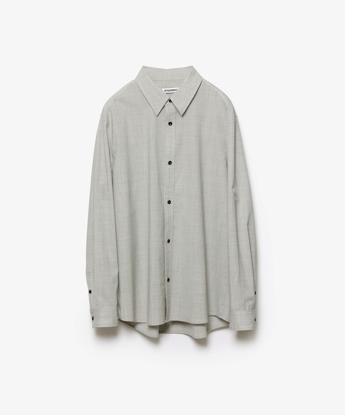軽やかさと洗練が交わる、都会的なロングスリーブシャツ■素材上質なメリノウールに、繊細な光沢とハリ感をもたらすトリアセテートブレンドのサイロストレッチ糸を交織したサマーウール・ストレッチトロピカル素材を採用。高温多湿な季節にも快適な通気性と軽快な着用感を実現しつつ、ウールならではのしなやかなドレープと自然なストレッチ性を兼ね備えています。トリアセテートが持つ反発性と形態安定性により、着用中や移動時のシワを抑え、イージーケア性にも優れた仕上がりです。表面は微光沢を帯び、さらりとしたタッチと高級感のある質感が特徴。都会的で洗練された印象を演出します。■デザイン肩を落としたリラックスフィットと、計算されたやや長めの着丈が生む絶妙な抜け感が魅力のロングスリーブシャツ。軽量でシワになりにくい素材感とイージーケア性により、日常の動きに寄り添いながら、洗練された印象を保ちます。ミニマルなデザインが素材とシルエットの美しさを際立たせ、都会的で上品な佇まいを演出する一着です。■SET UP同素材にていくつかのジャケットやトラウザーズをご用意しています。好みや気分、TPOに合わせて幾通りもセットアップの組み合わせが可能。カジュアルだけでなく、ビジネスカジュアル、出張、トラベル、パーティーなど様々なシーンで着用いただけるユーティリティーなロングスリーブシャツに仕上げています。AG61-063 - 2B JACKETAG61-065 - COLLARLESS JKTAP61-068 - 1TUCK WIDE TROUSERSAP61-070 - REGULAR FIT EASY TROUSERS【ATTACHMENT / アタッチメント】99年に熊谷和幸により”ATTACHMENT”が設立。服を、着る人の魅力や個性、内面を引き出す“付属”として捉え、シルエットの計算と、素材使いから生まれる着心地の良さ、クラフツマンシップが叶える緻密な仕立て、ディテールをそぎ落としたシンプルで普遍性のあるウェアを提案しています。
