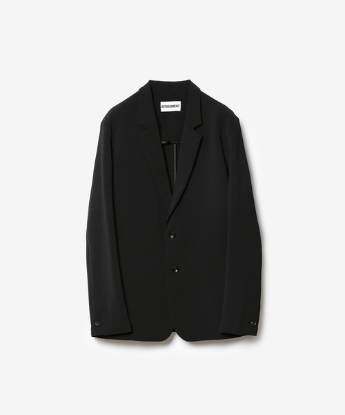 機能と上質感が融合した、モダンなテーラードジャケット■素材ウールのような上質な表情を持つ、ポリエステルストレッチダブルクロス素材。ポリエステルフィラメントでありながら、梳毛トップ糸のような繊細なメランジ感を再現。糸そのものがマットでパウダリーな質感を持ち、程よい膨らみと優れたストレッチ性を兼ね備えています。さらに、ピリングしにくくシワにもなりにくいイージーケア性を備え、日常使いにおいても快適で美しい佇まいを保ちます。■デザインスラッシュポケット仕様の2Bジャケット。無駄を削ぎ落としたミニマルな構造の中に、計算されたラインと立体的なフォルムが際立ちます。軽やかな素材の落ち感とストレッチ性が融合し、快適な着心地とモダンで洗練された印象を両立。カジュアルからドレススタイルまで自在に対応する、アタッチメントらしい汎用性の高い一着です。■SET UP同素材にていくつかのトラウザーズをご用意しています。好みや気分、TPOに合わせて幾通りもセットアップの組み合わせが可能。カジュアルだけでなく、ビジネスカジュアル、出張、トラベル、パーティーなど様々なシーンで着用いただけるユーティリティーな2Bジャケットに仕上げています。AP61-069 - BELTED WIDE TAPERED TROUSERSAP61-079 - BELTED STRAIGHT TROUSERSAP61-071 - REGULAR FIT EASY TROUSERS【ATTACHMENT / アタッチメント】99年に熊谷和幸により”ATTACHMENT”が設立。服を、着る人の魅力や個性、内面を引き出す“付属”として捉え、シルエットの計算と、素材使いから生まれる着心地の良さ、クラフツマンシップが叶える緻密な仕立て、ディテールをそぎ落としたシンプルで普遍性のあるウェアを提案しています。